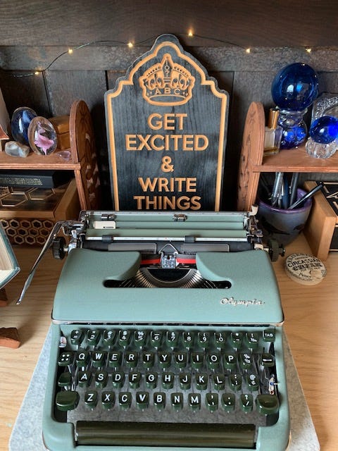 I made batches of inks from botanical matter found within walking distance of my house; I wrote and illustrated “crankie” tales that I wound through tiny screens in little boxes; I collected tidewrack from the shore and wrote divinations from the sea; I talked my dearest sweetheart into building a Little Free Library so I could become the resident book fairy of our winding dirt road; I taught myself to clean and repair vintage typewriters so I could write with more purpose and less distractions; I developed and taught creative writing classes (with my growing fleet of extra typewriters); I made small hand-bound notebooks and wrote every strange thing I could think of in them; I started hiking with a typewriter into wild, beautiful places so I could write poetry for strangers. Oh, and I started this newsletter in hopes that maybe I could give a few people, near and far, a little bit of magic for their own lives. Looking back on it now, it’s easy to see that every new experiment was a small but mighty act of hope, but in the middle of it all, it often felt as if I was flailing. Turns out, flailing towards hope isn’t such a bad idea, because eventually the results of those crazy experiments began to add up, and so did my words.